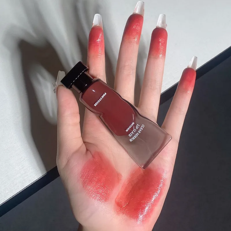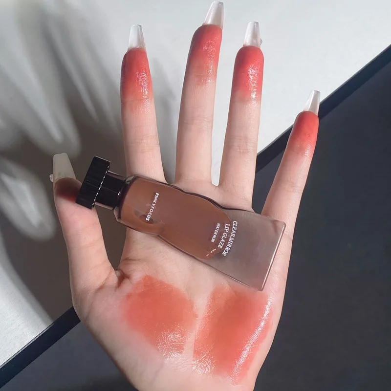 Black Mirror Water Lip Gloss Lip Glaze Transparent Glass Lip Oil Waterproof Liquid Lipstick Nude Brown Clear Tint Makeup