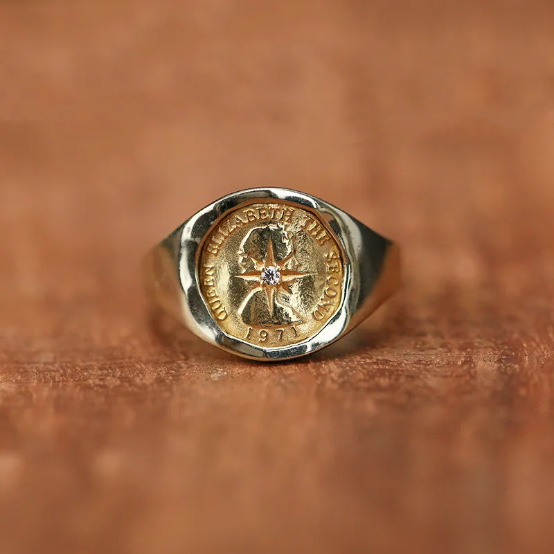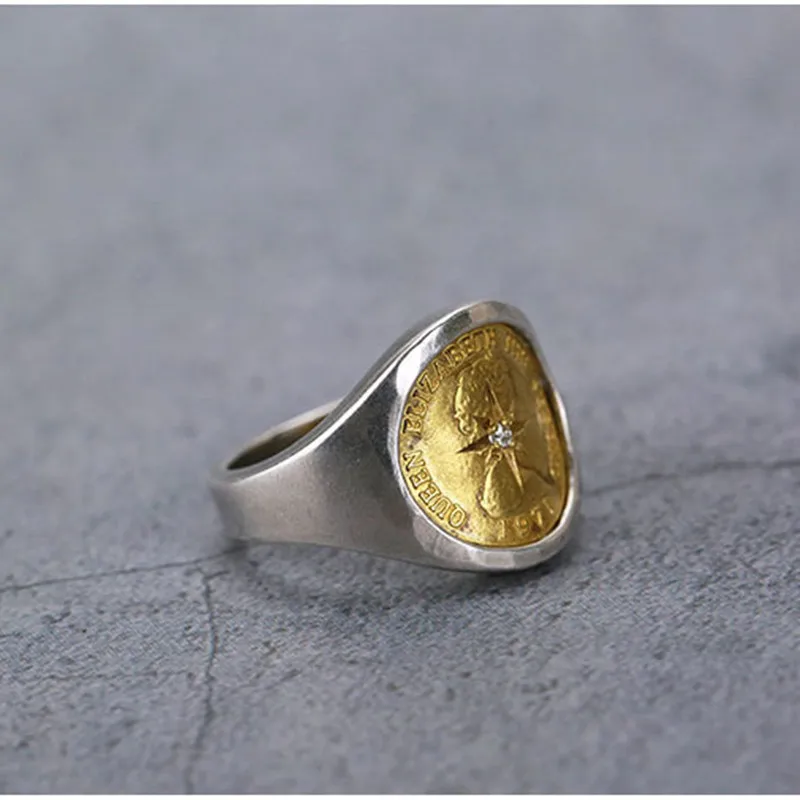 Creative Handmade Coin Open Ring Fashion Trend Elizabeth Brass Coin Adjustable Ring Women Jewelry Gift