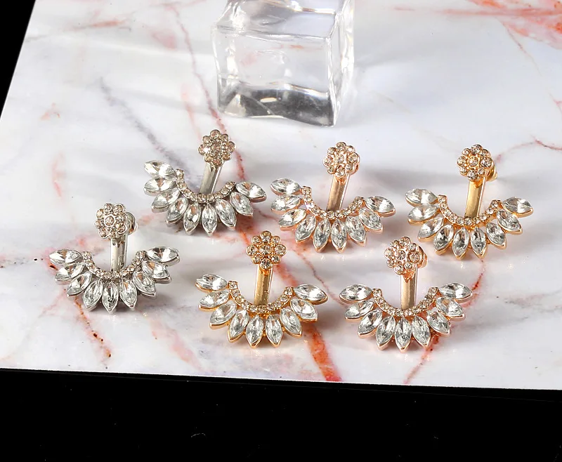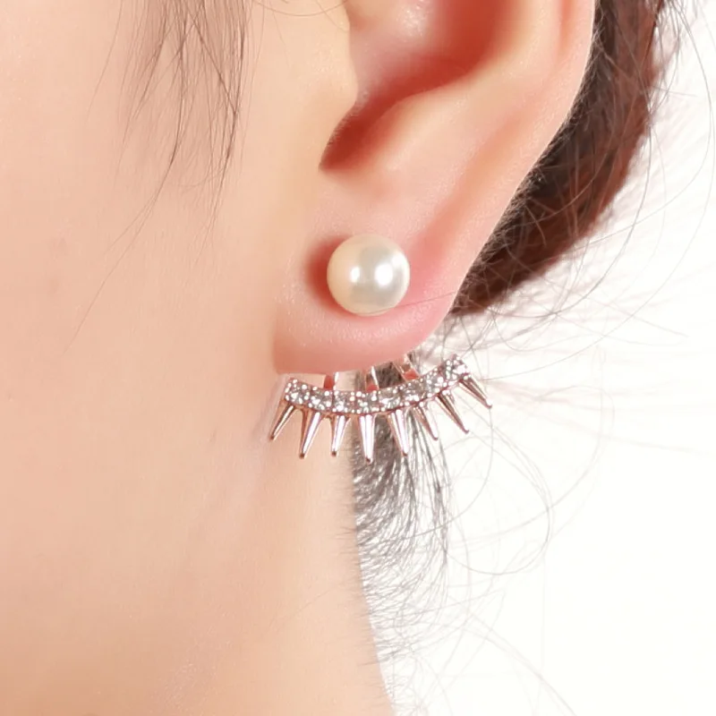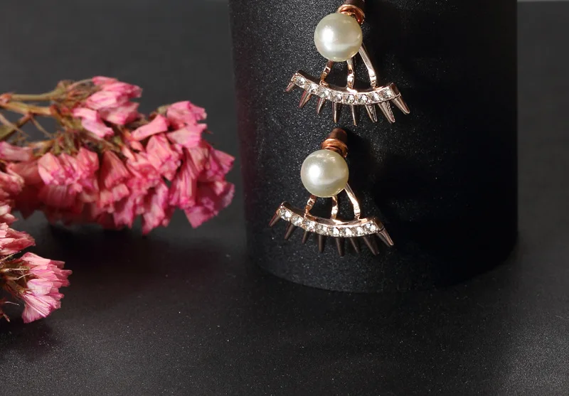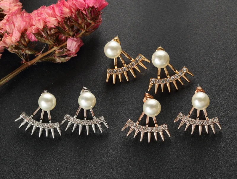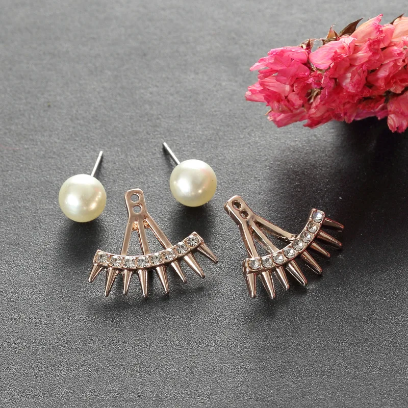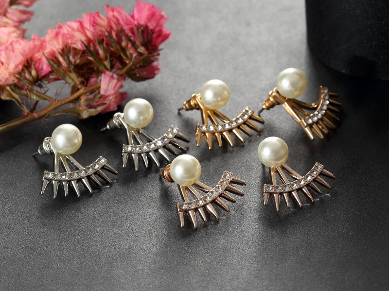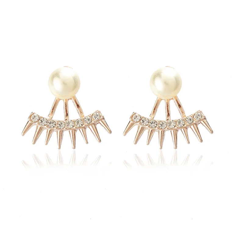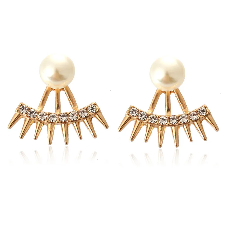 crystal gold color ear fashion raw crystal Simulated-Pearl stud earrings for women jewelry gift party