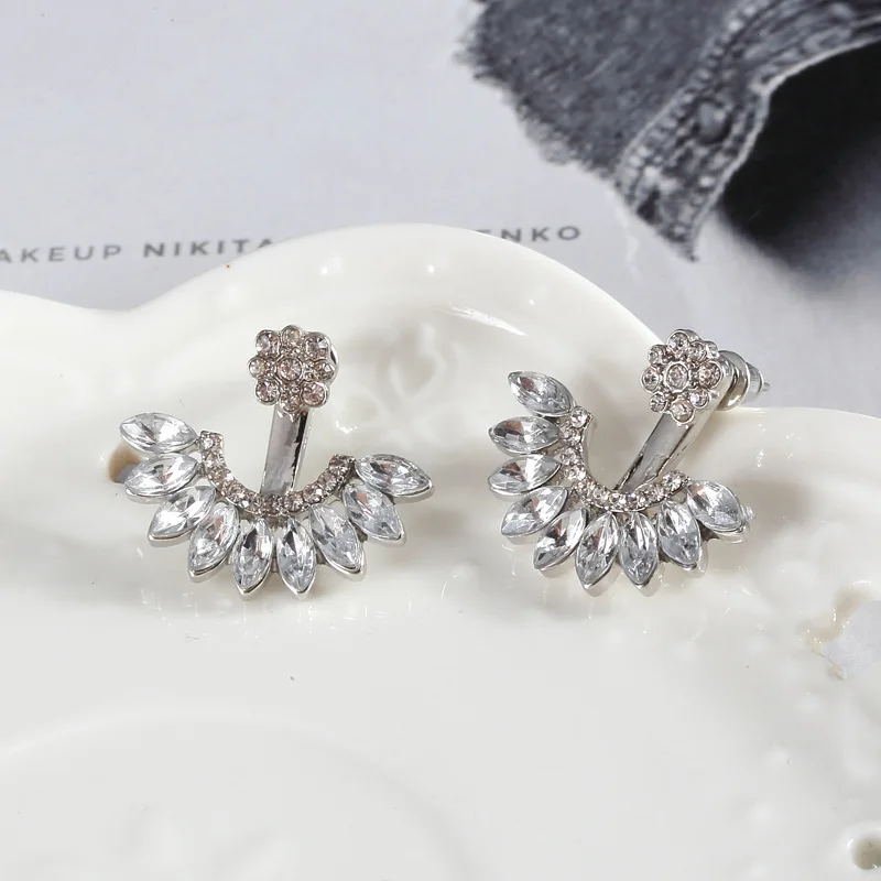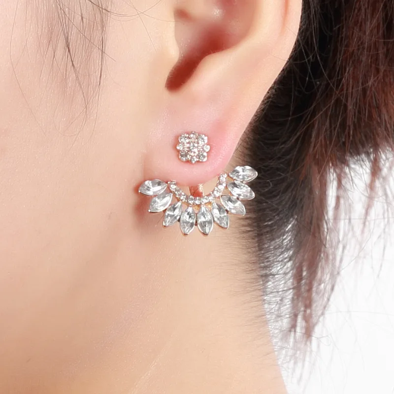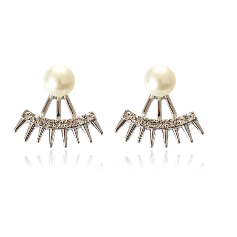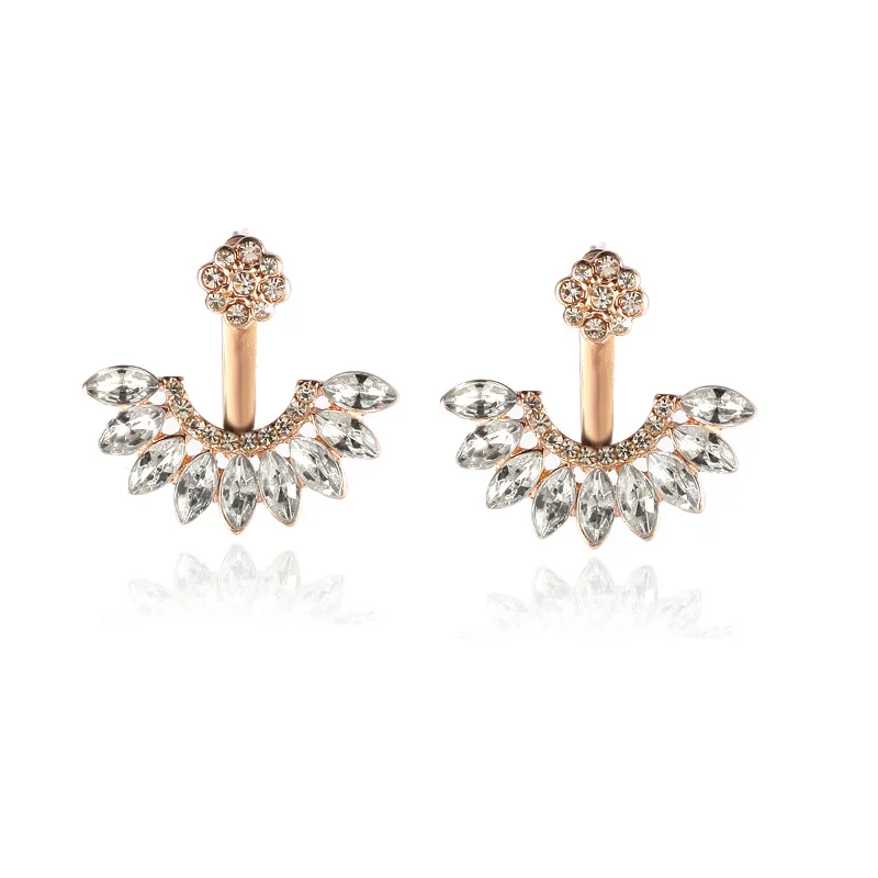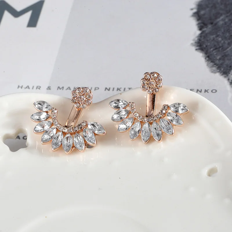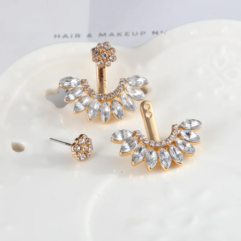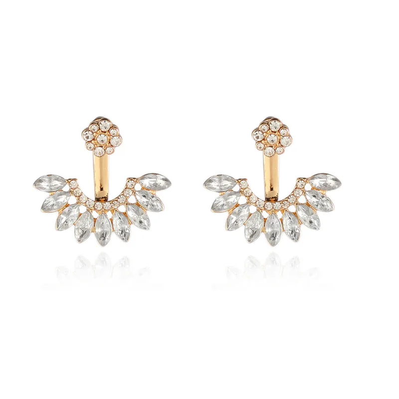 crystal gold color ear fashion raw crystal Simulated-Pearl stud earrings for women jewelry gift party