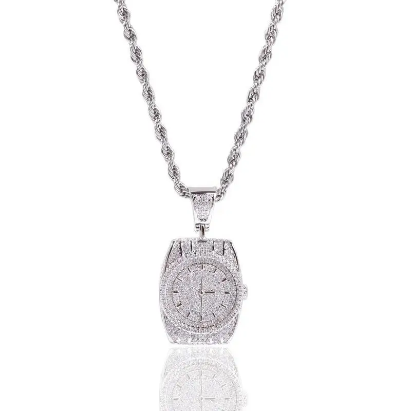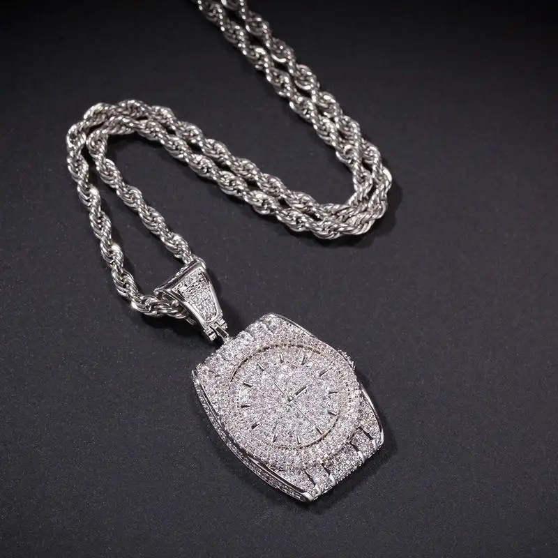 Exquisite Zircon Watch Shape Pendant Necklace Men and Women Trend Hip-Hop Rock Party Jewelry Gift Accessories
