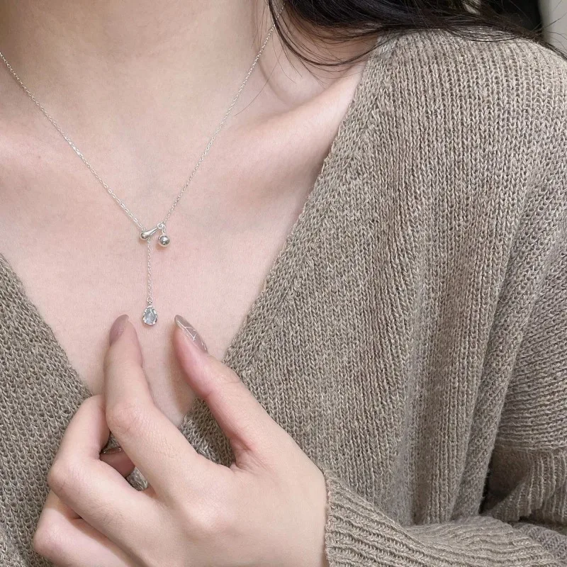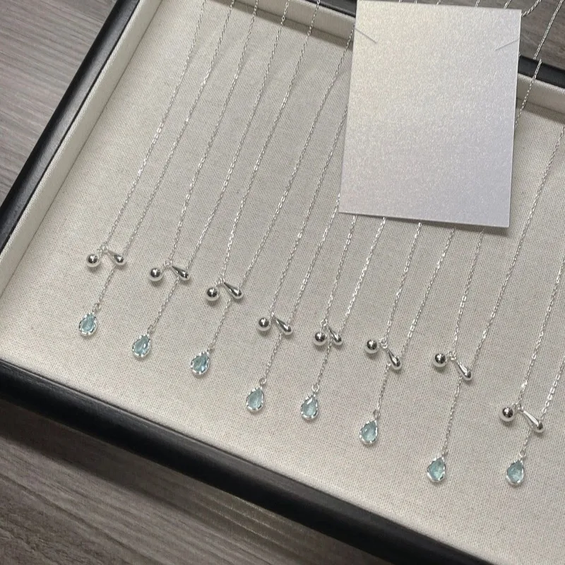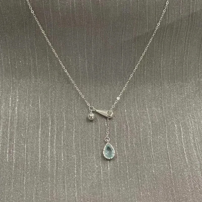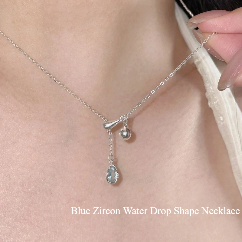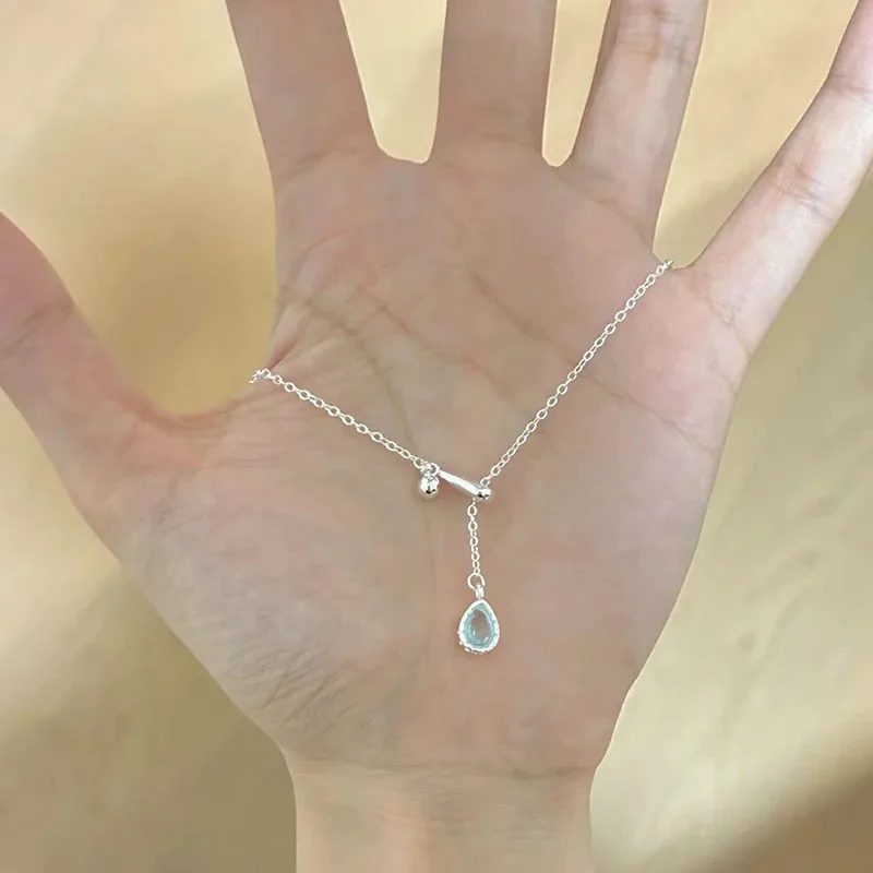Fashion Blue Zircon Water Drop Shape Necklace Simple Style Charm Ladies Pendant Choker Gift Korean Trend Jewelry 도매