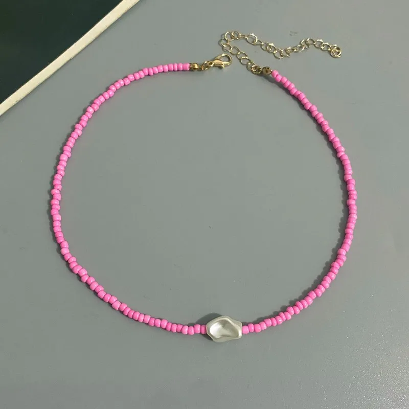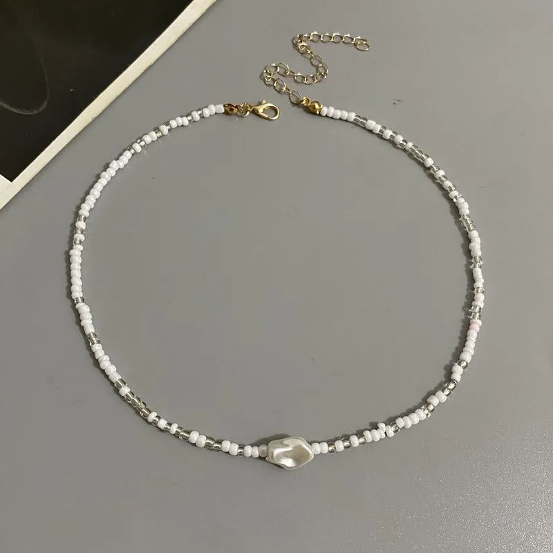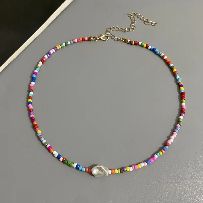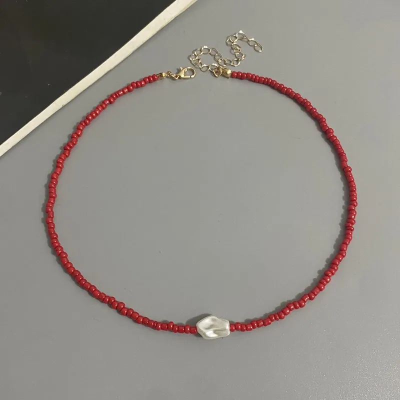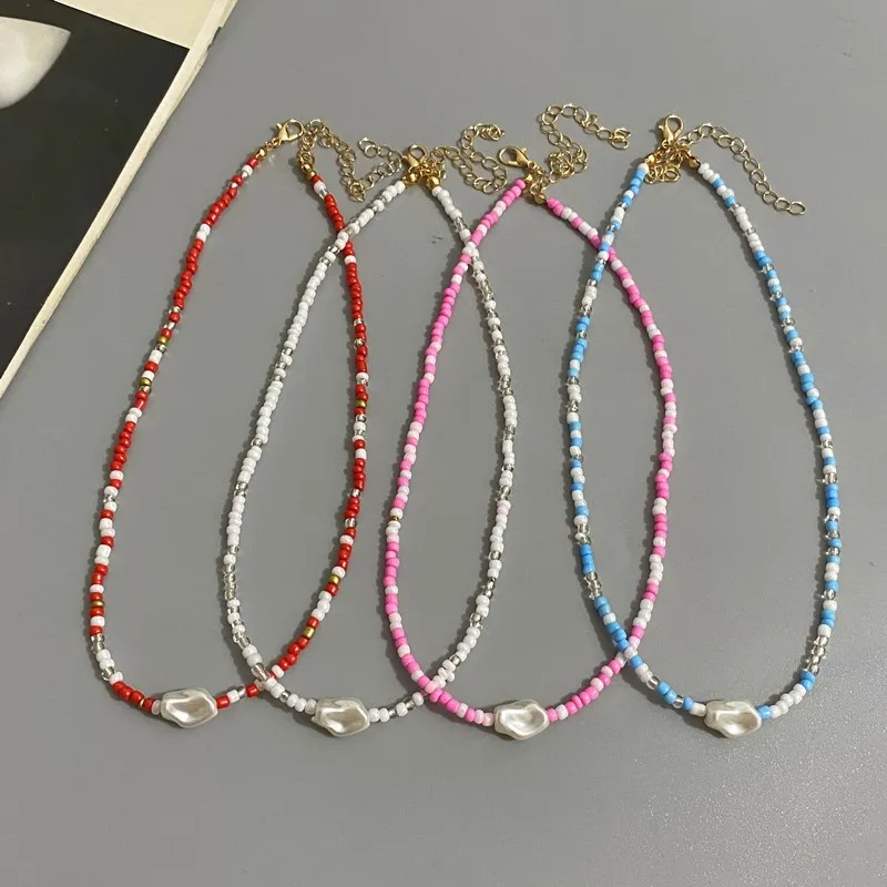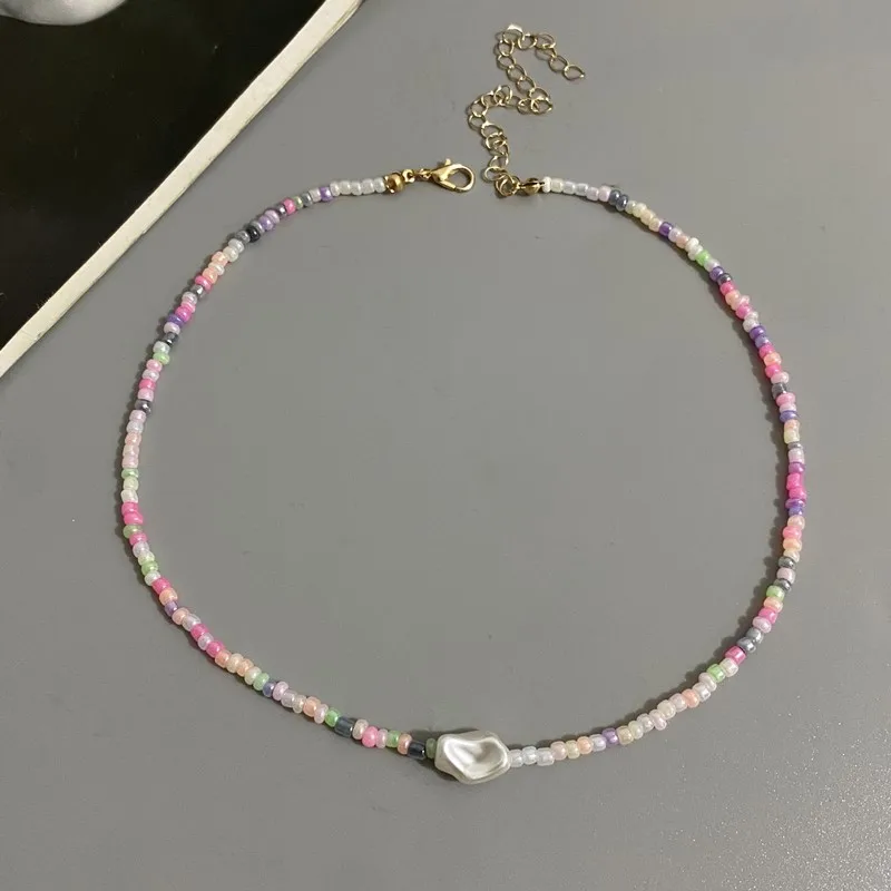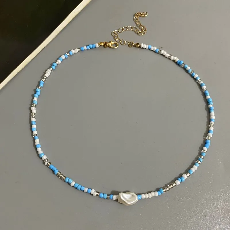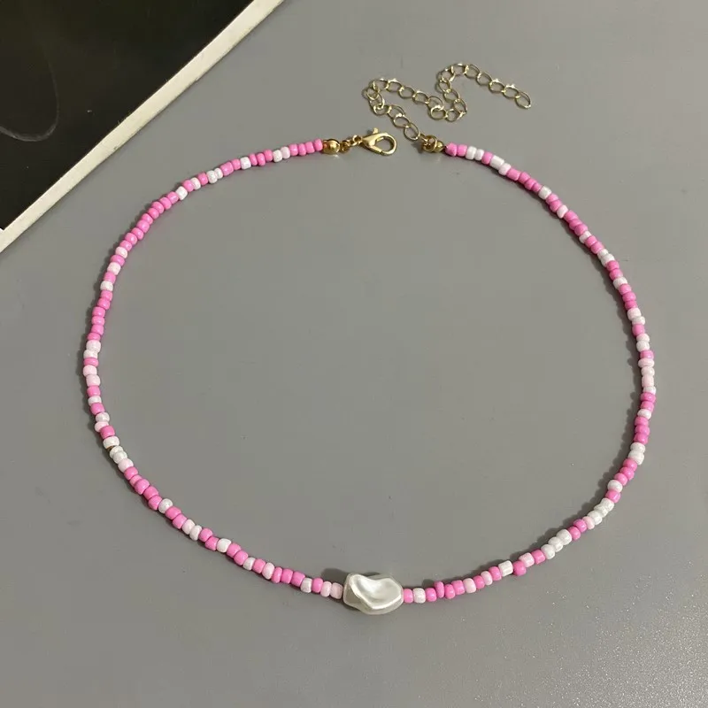 Boho Beads Necklace Women Imitation Pearl Seed Beaded Strand Short Choker Necklace Handmade Female Jewelry Wholesale