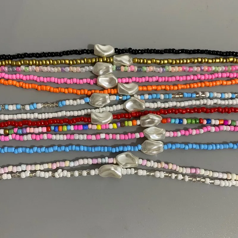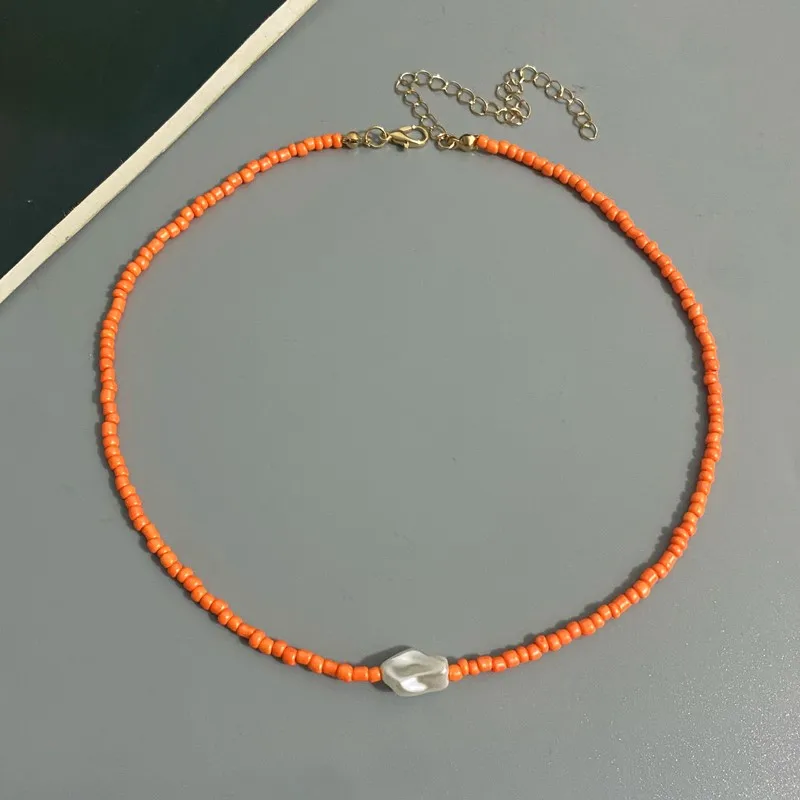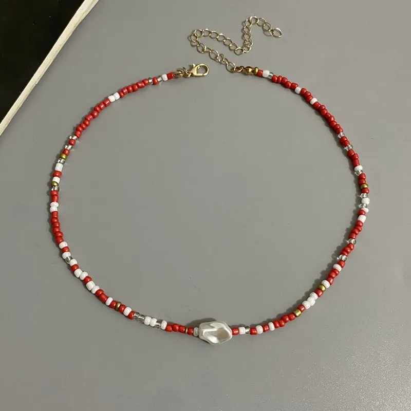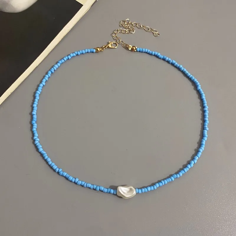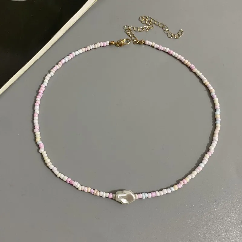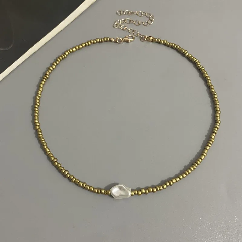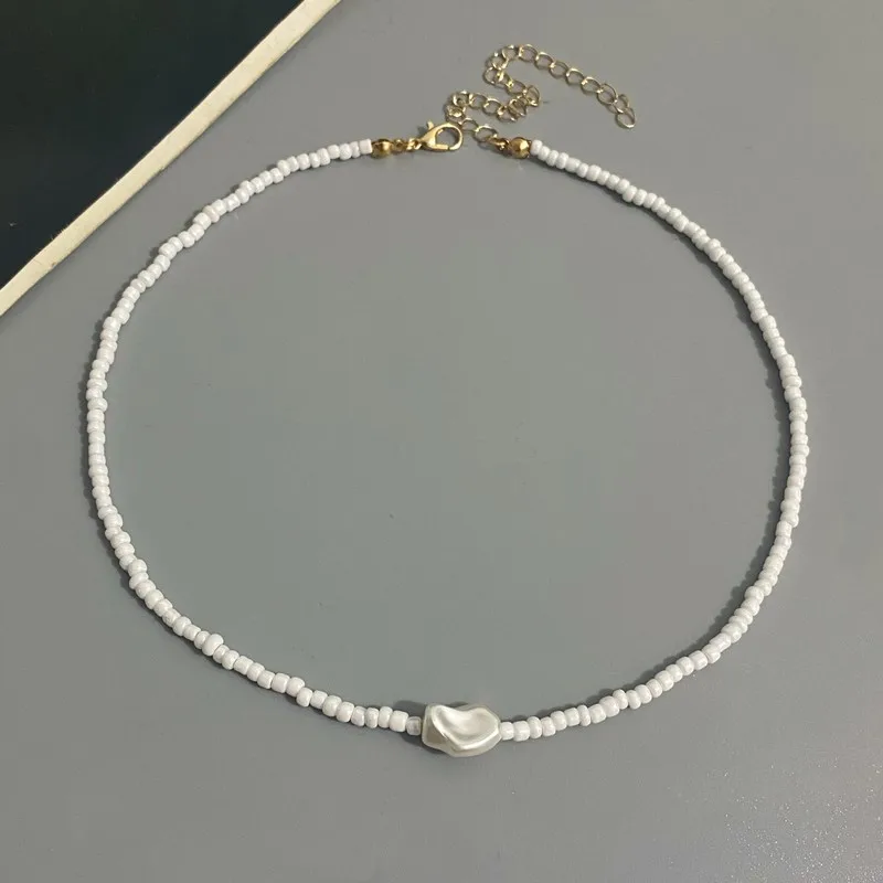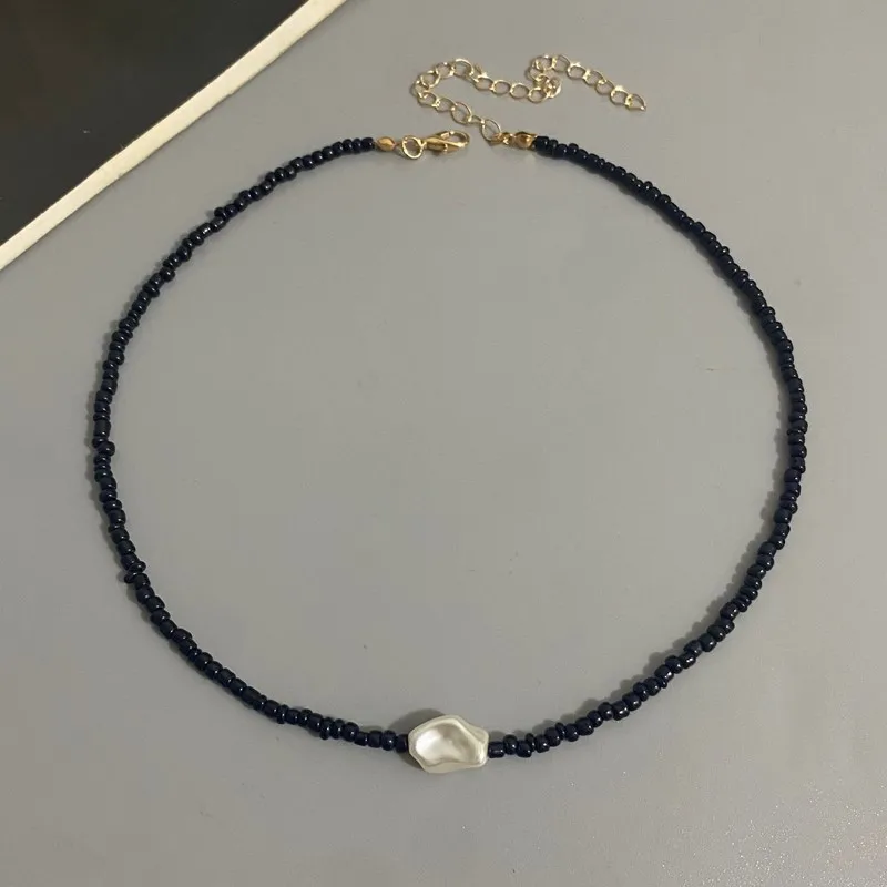 Boho Beads Necklace Women Imitation Pearl Seed Beaded Strand Short Choker Necklace Handmade Female Jewelry Wholesale