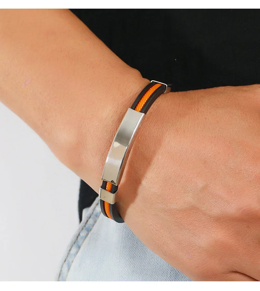 Fashion Men Silicone Bracelet Stainless Steel Bracelet on Hand for Couple Unisex Wrist Chain Jewelry