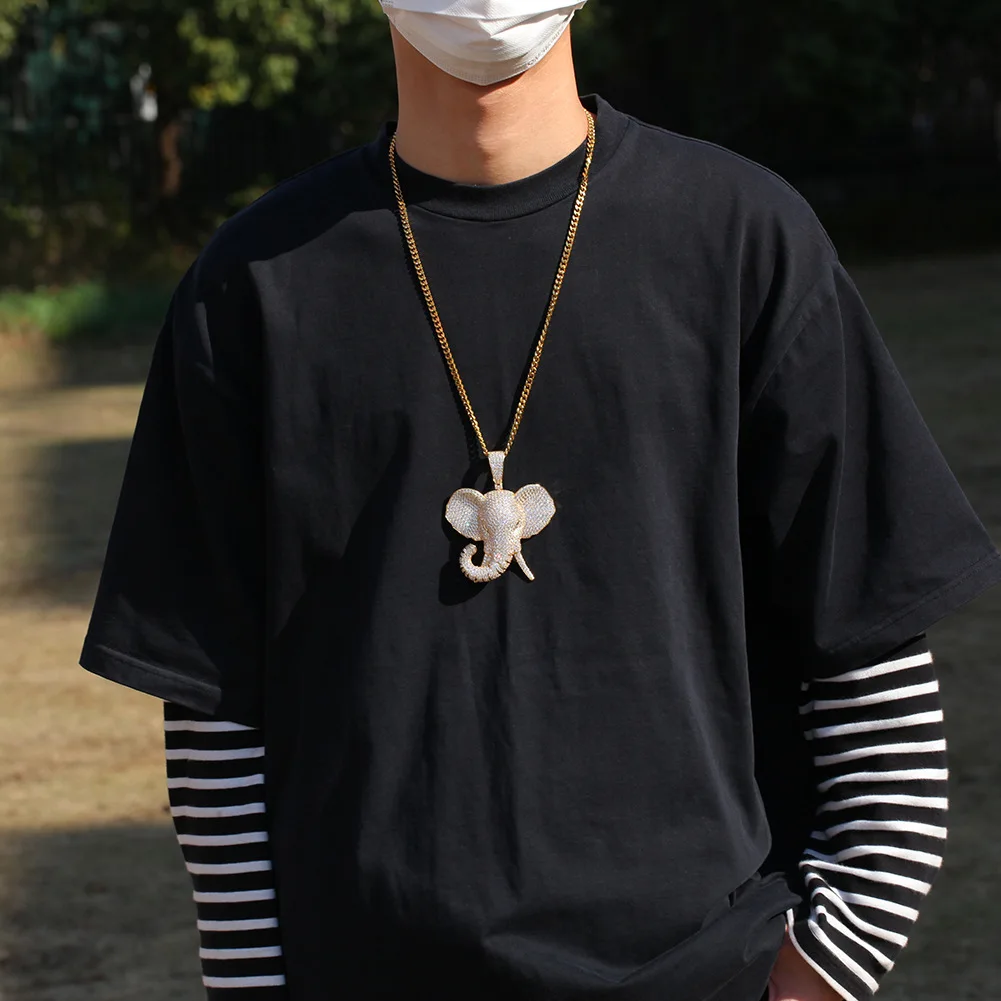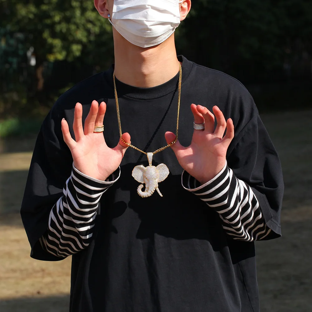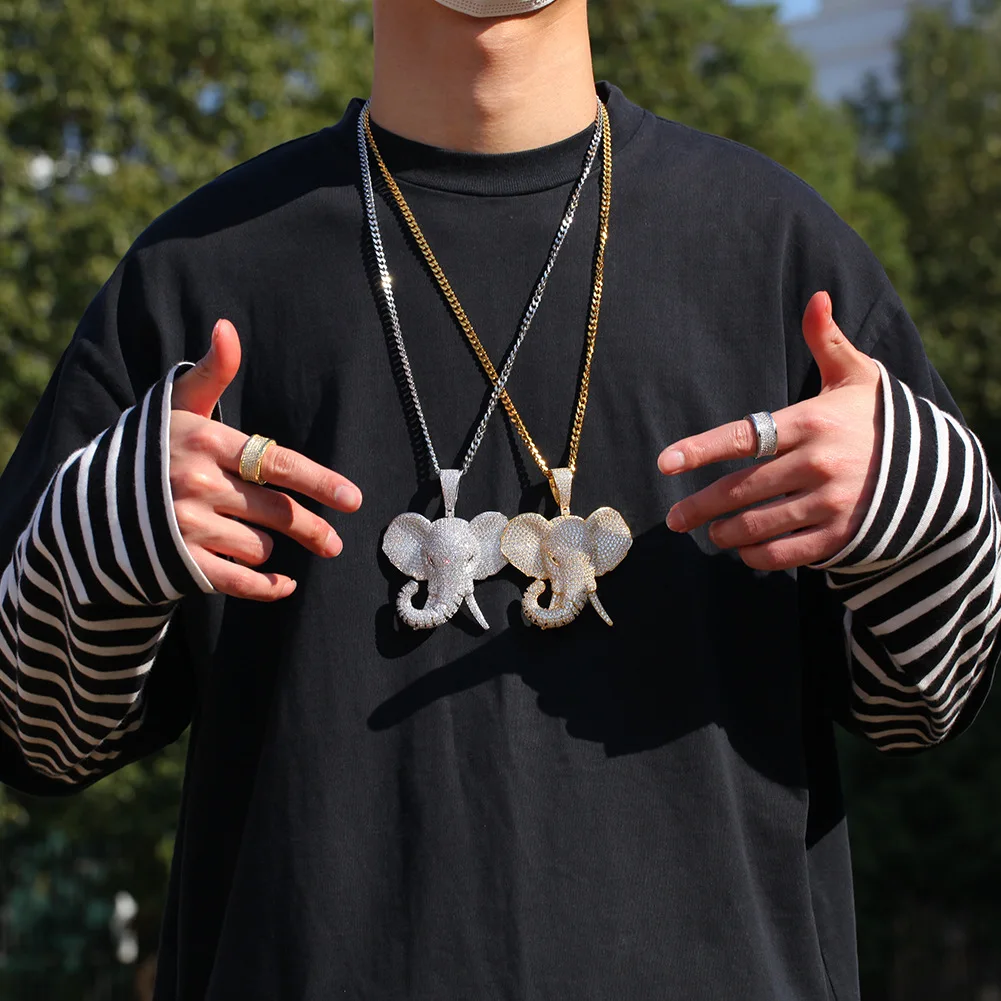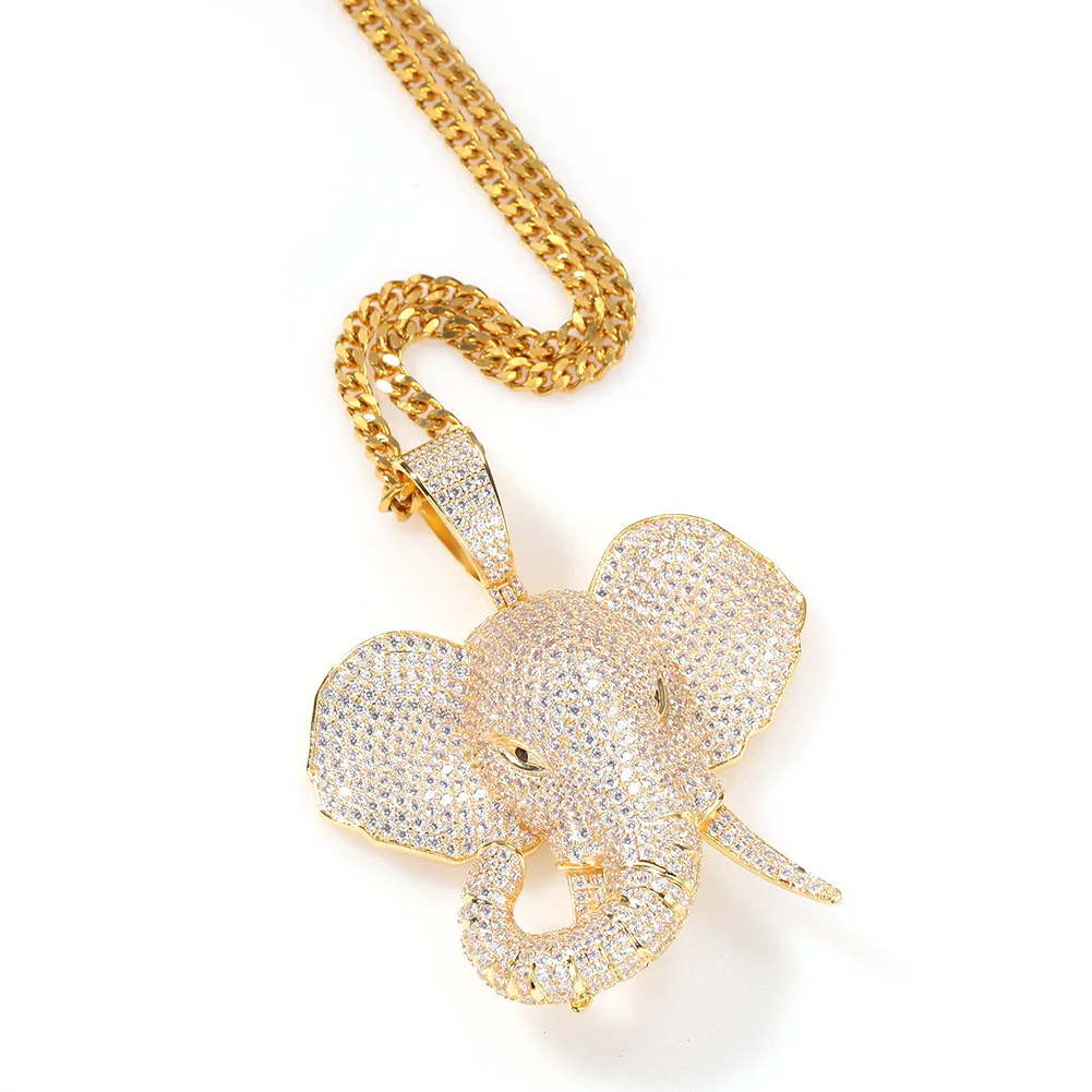 Hip Hop Cubic Zirconia Pave Bling Iced Out Elephant Pendant Animal Necklace Men Women Hip Hop Cool Rap Jewelry Birthday Gift