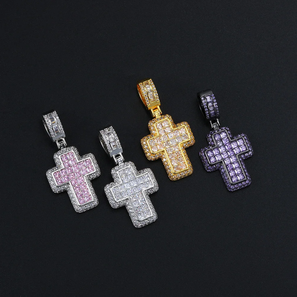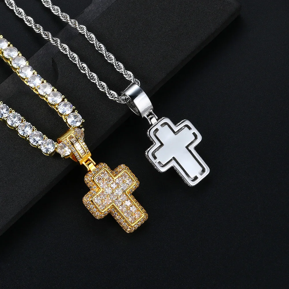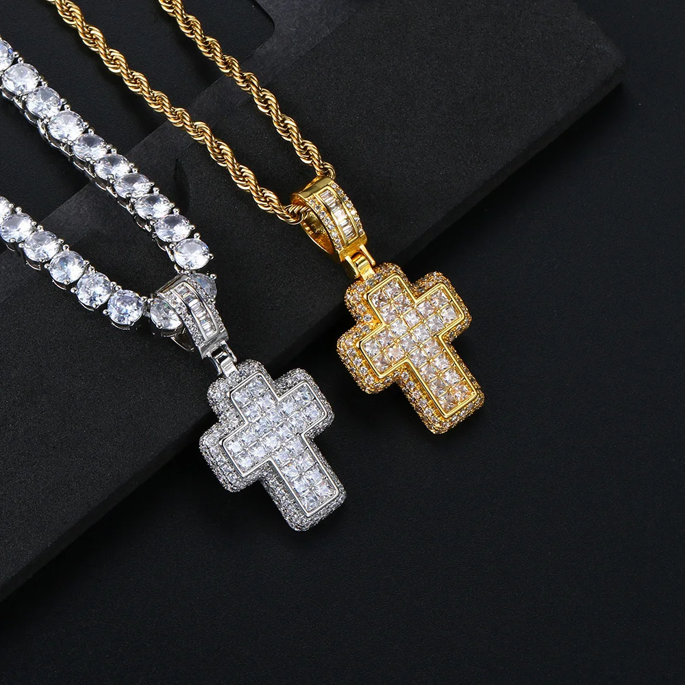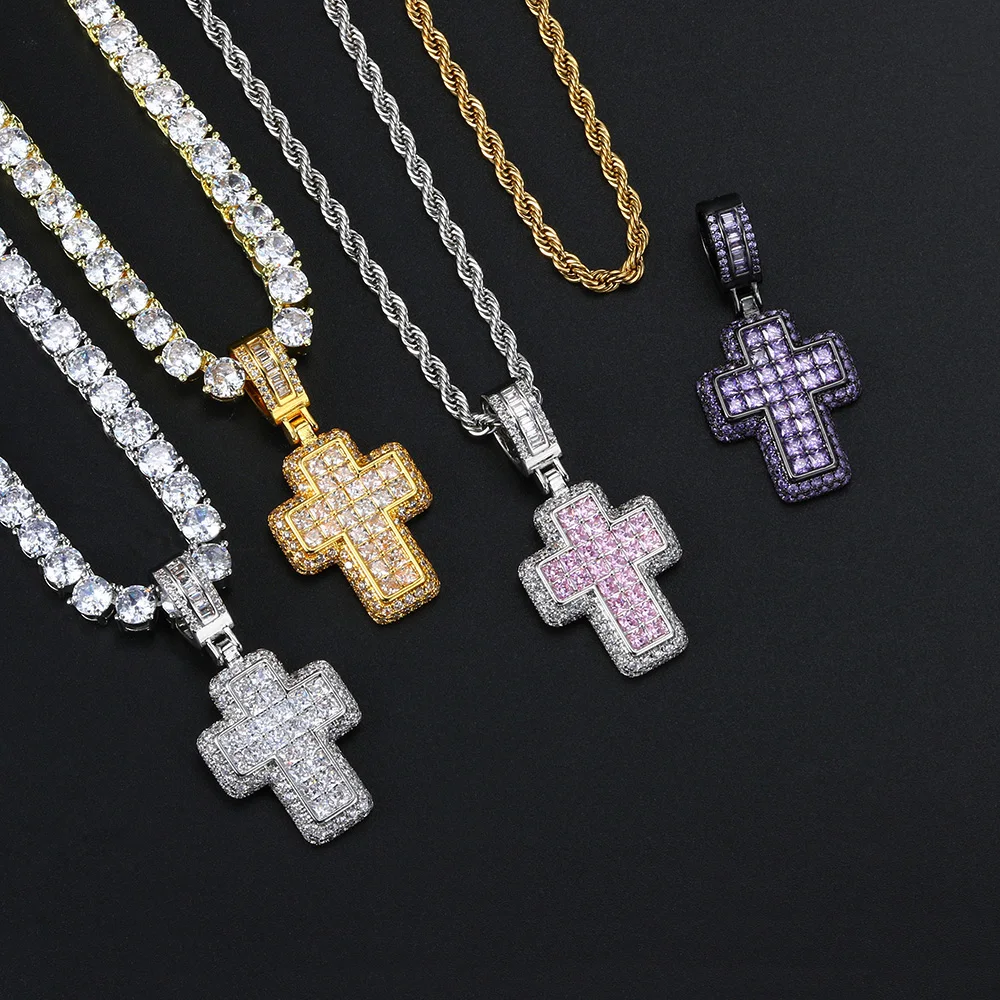 Hiphop Luxury Inlaid CZ Cross Pendant Rope Chain Necklaces for Men Women Punk Personality Rapper Accessory Fashion Neck Jewelry