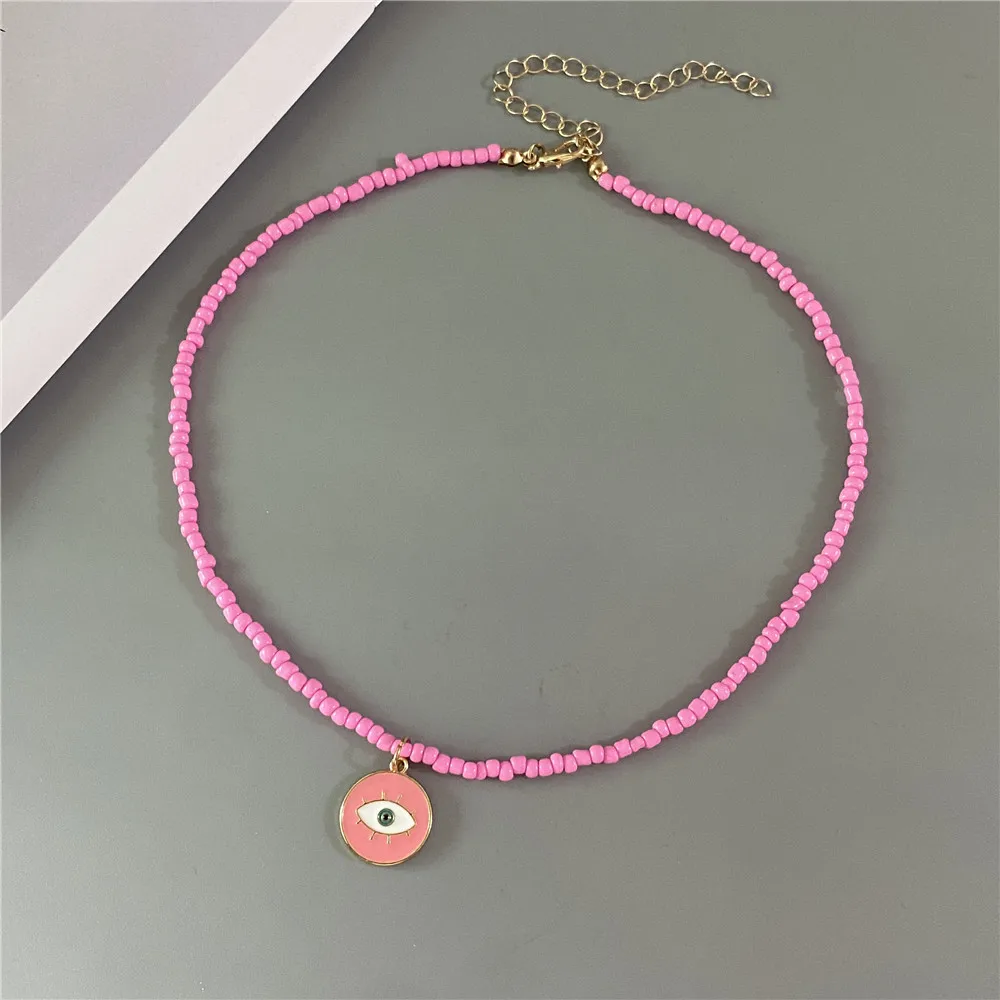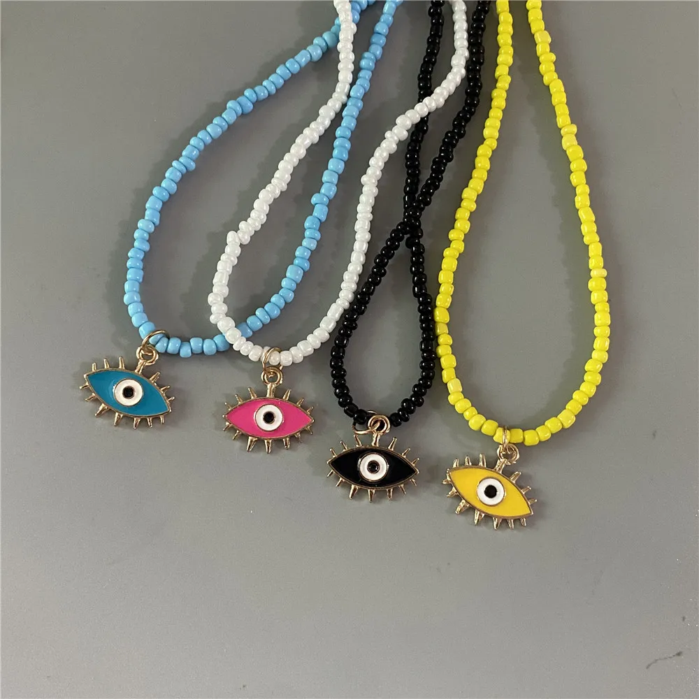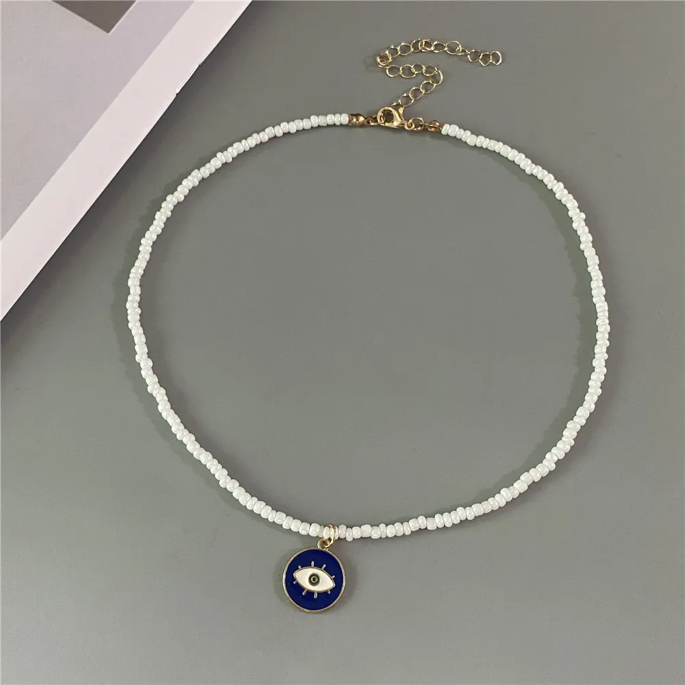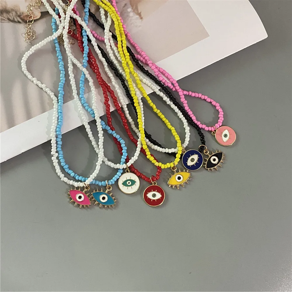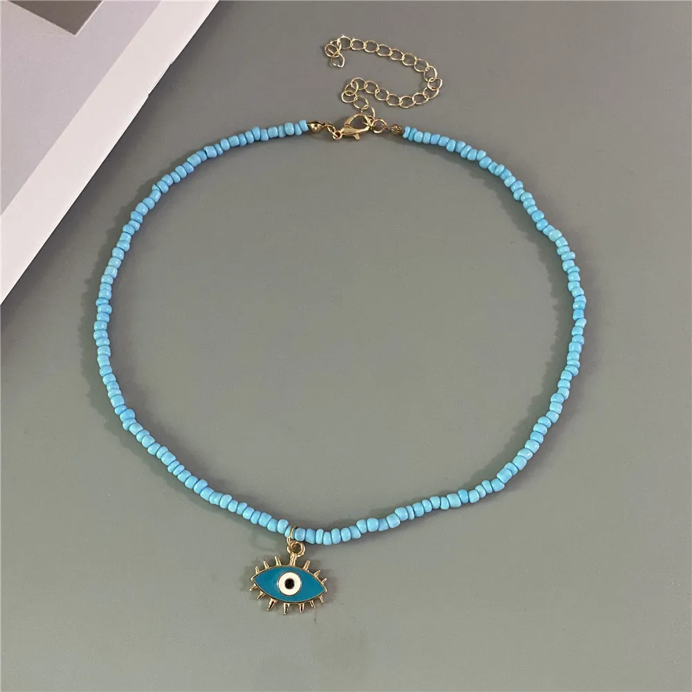 Lucky Handmade Necklace Popular Turkeky Eye Pendant Choker Colorful Rice Beadds Neck Jewelry