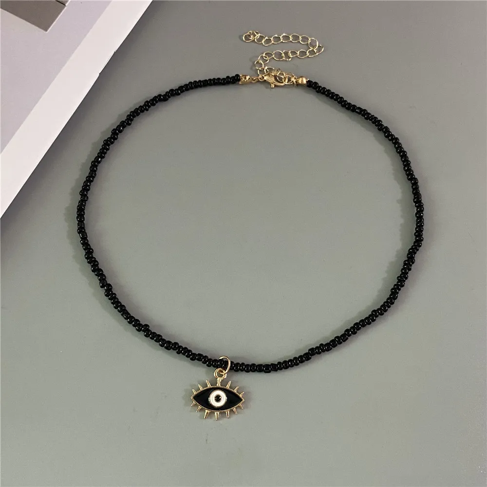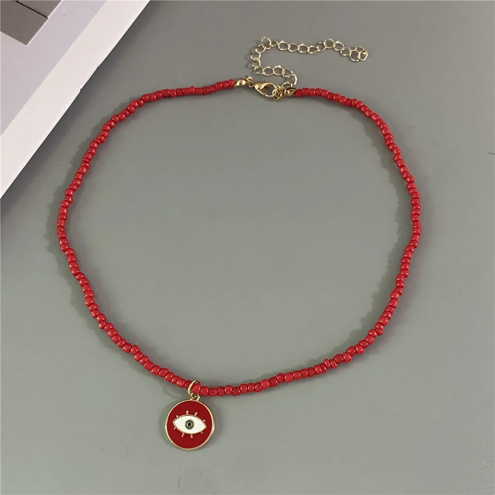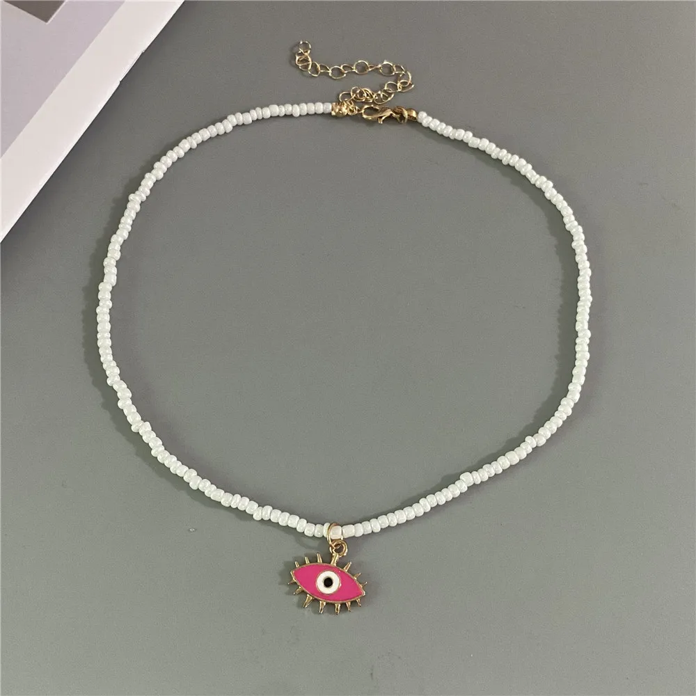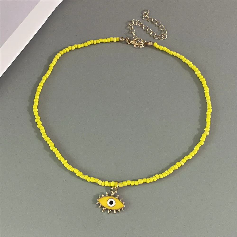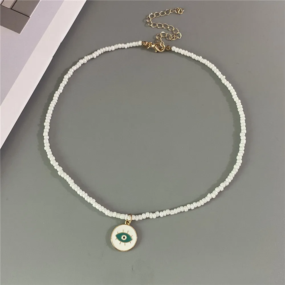 Lucky Handmade Necklace Popular Turkeky Eye Pendant Choker Colorful Rice Beadds Neck Jewelry