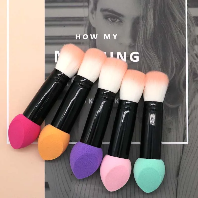 1pc Double Head Brush / Blush Brush +1pc sponge (9 color style,pls choose as the picture shows)