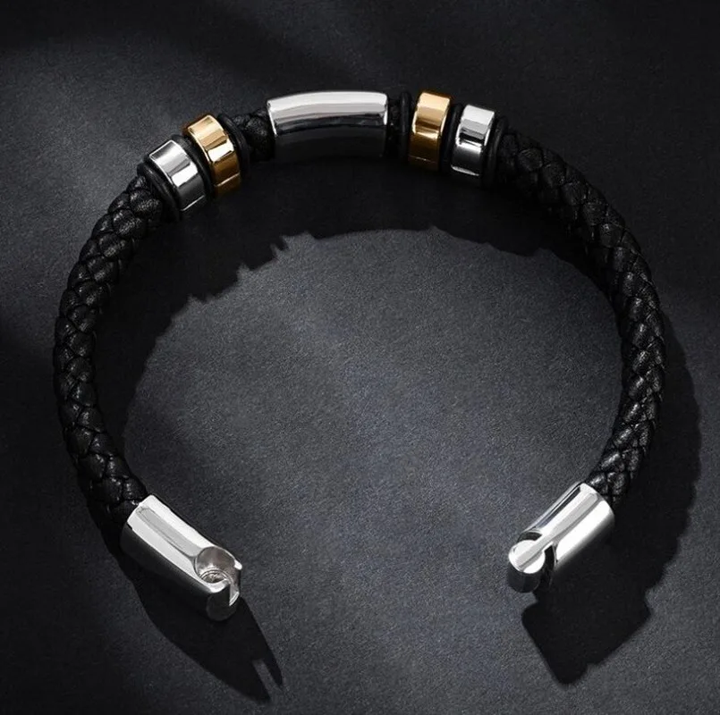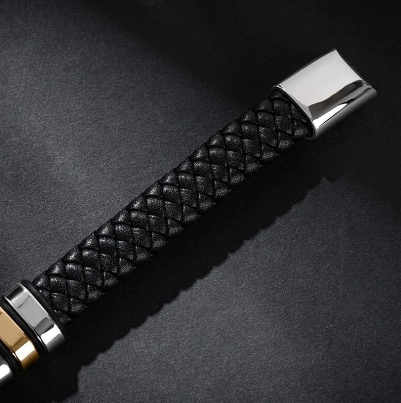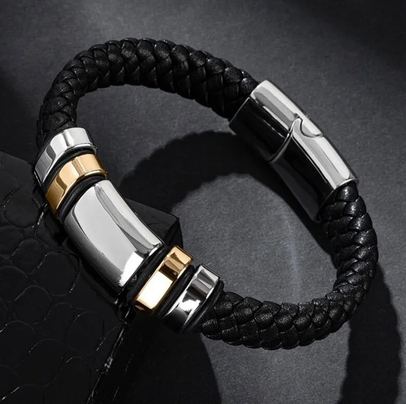 Men\\\\'s Classic Black Leather Bracelet Metal Magnetic Buckle Fashion Bracelet Jewelry Casual Daily All-Match Jewelry