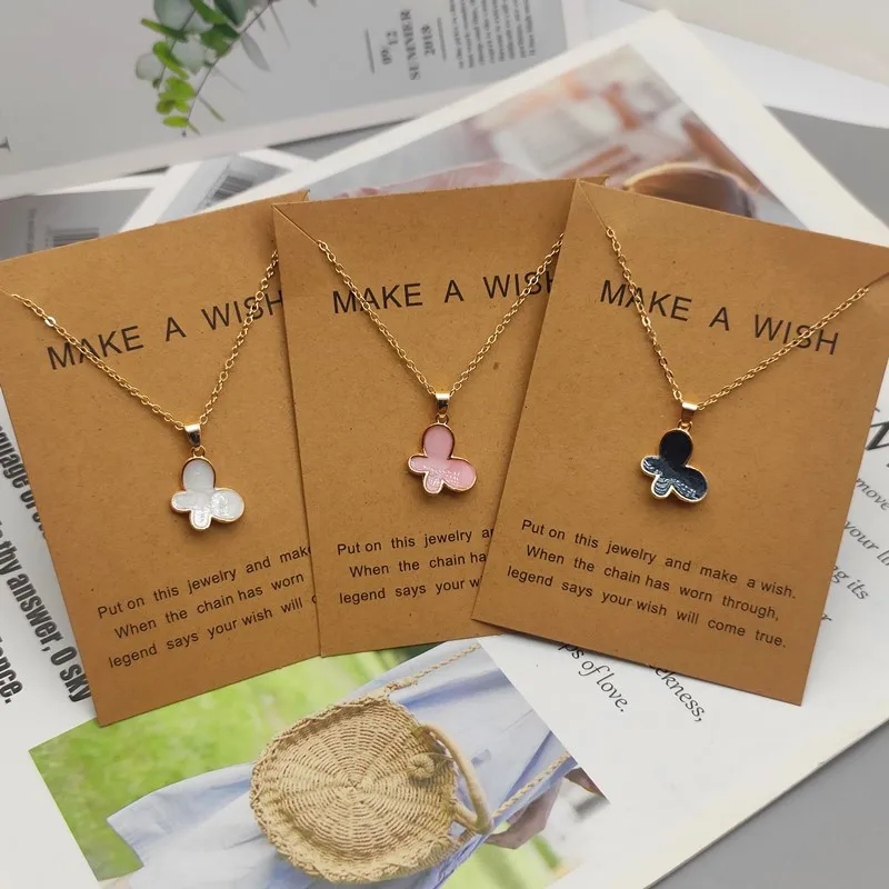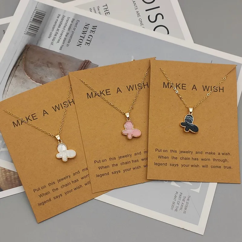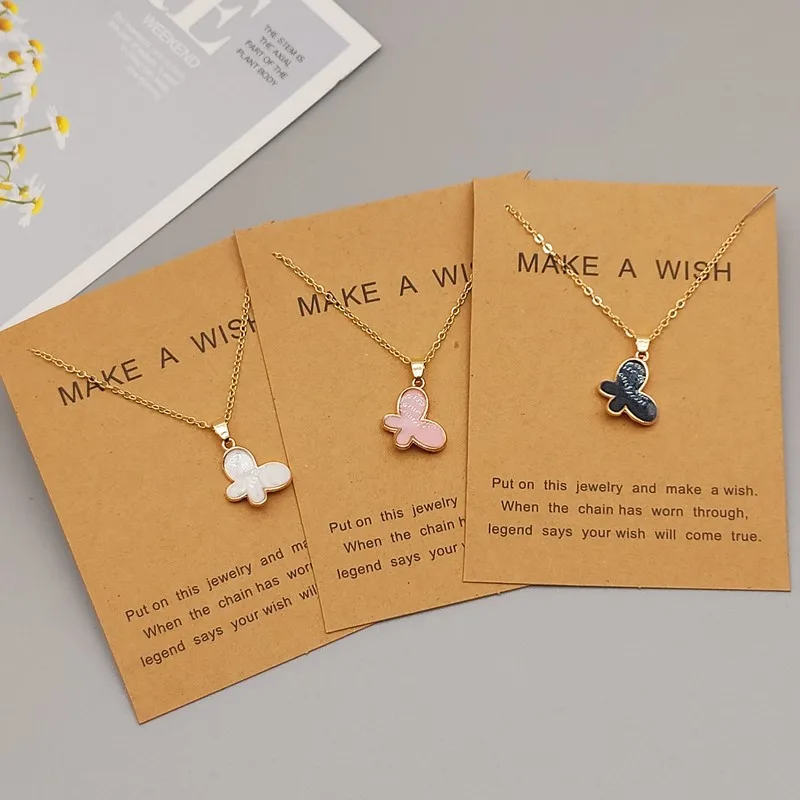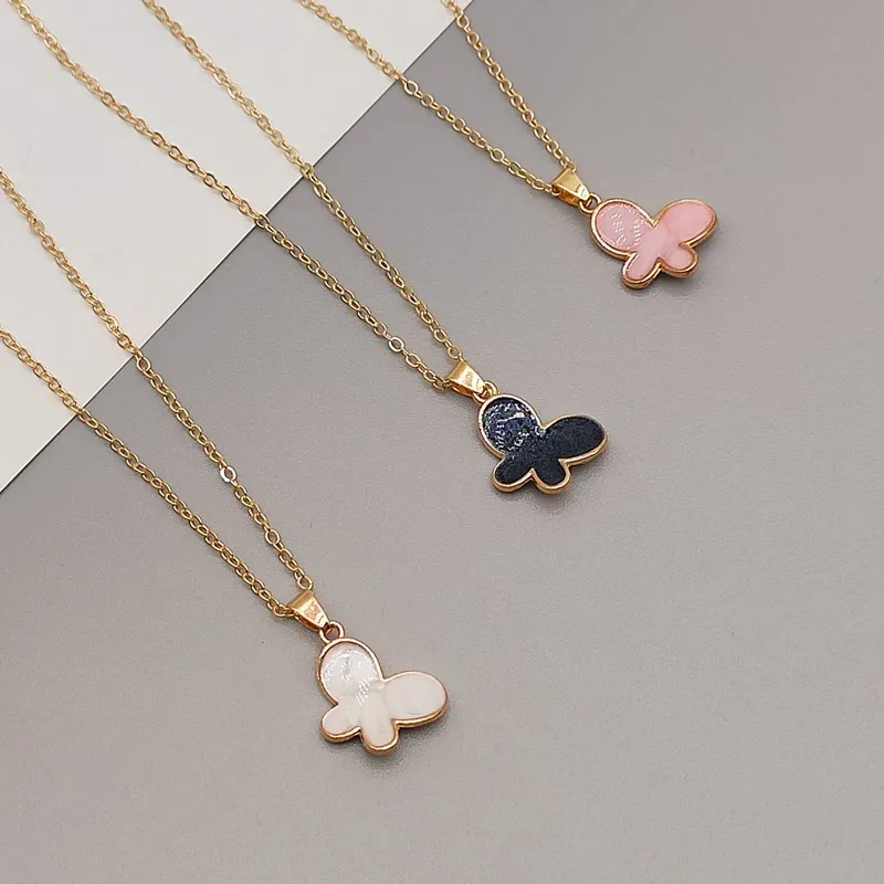 Neklace for Women Cute Lovely Butterfly Pendant Necklace Gift for Friend White Pink Black Korean Style Fashion Neck Jewelry