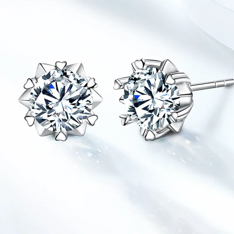 New 2024 Moissanite Stud Earrings for Women Original 925 Sterling Silver Snowflake Lady Moissanite Diamond Earring
