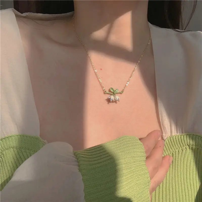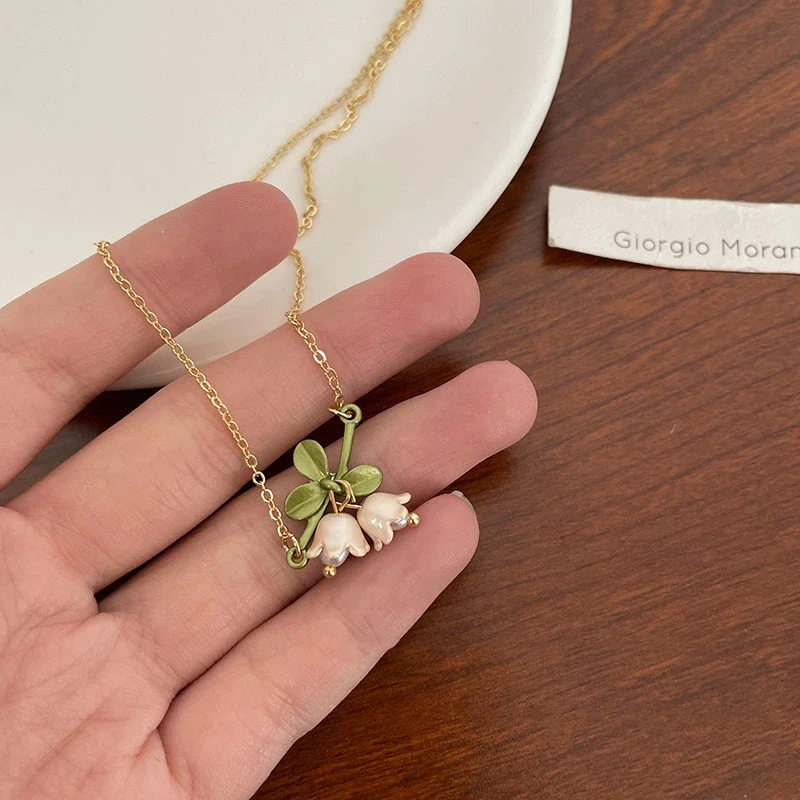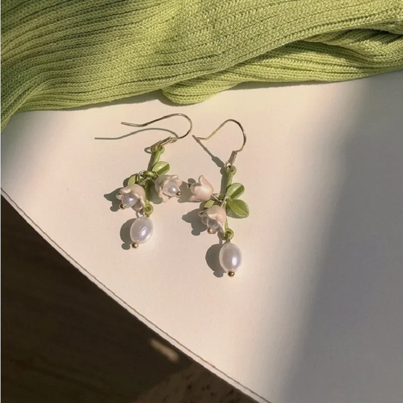 New Design Lily of The Valley Pearl Green Ear Hook for Women Fashion Elegant White Flowers Drop Earrings Wedding Party Jewelry