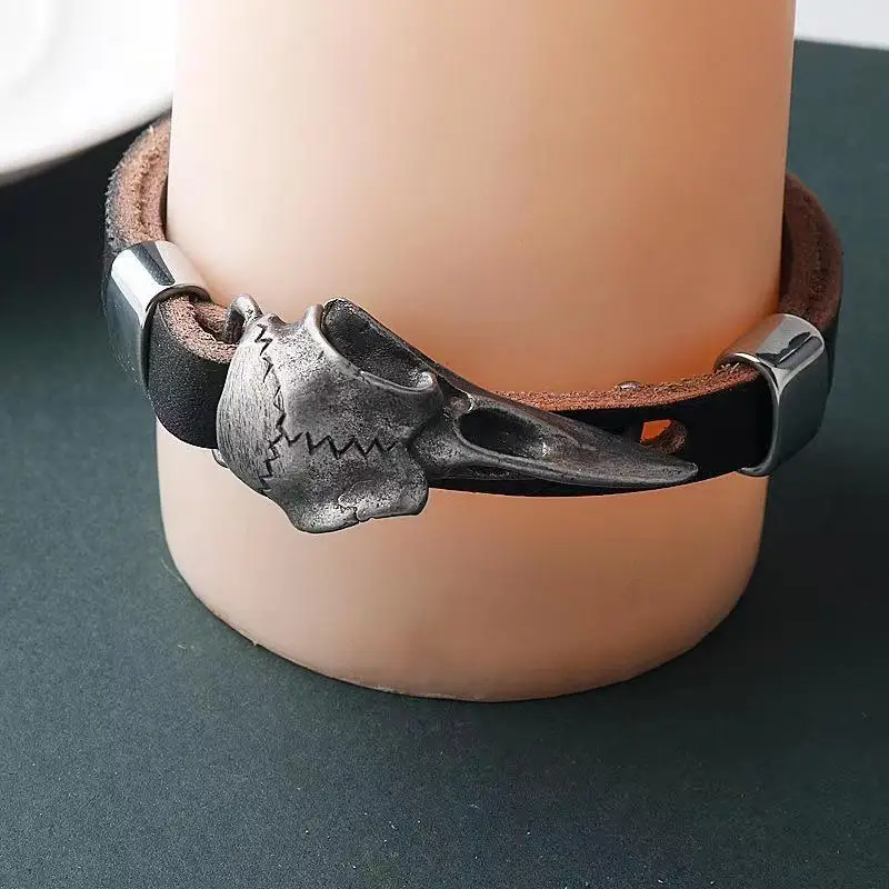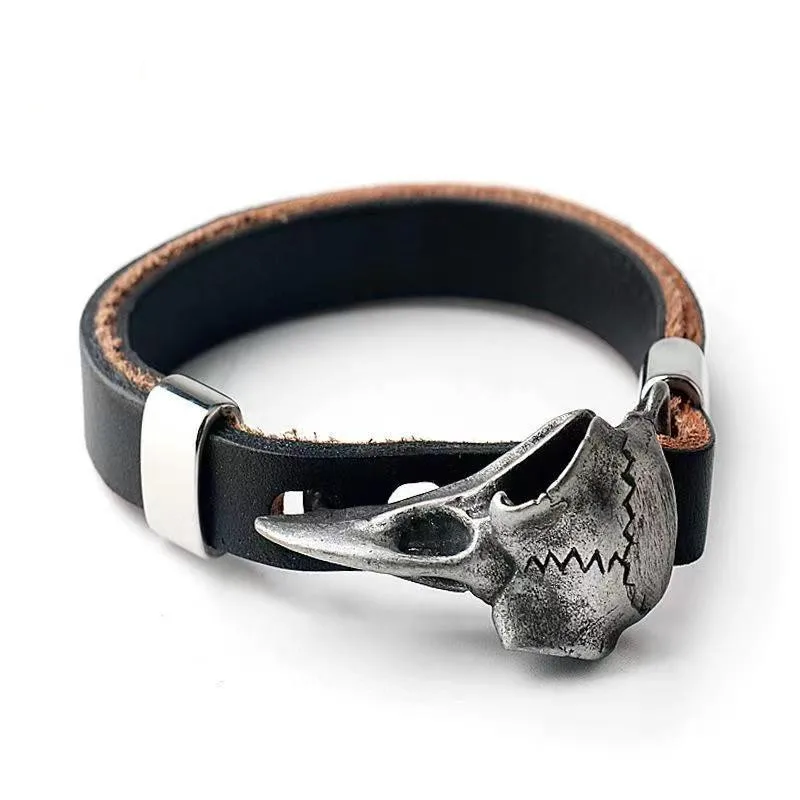 Odin Raven Skull Bracelet Mens Slavic Leather Bracelet Punk Biker Rock Party Accessories Nordic Jewelry