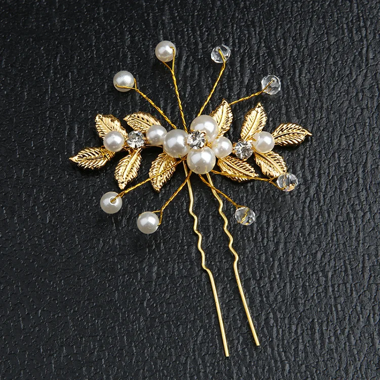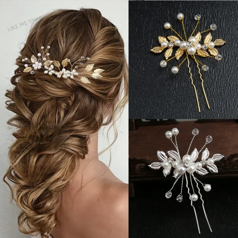 Pearl Flower Hairpin Side Comb Sets Wedding Hair Accessories Leaf Shaped Tiaras Bride Insert Hair Clip Jewelry Fashion Headwear