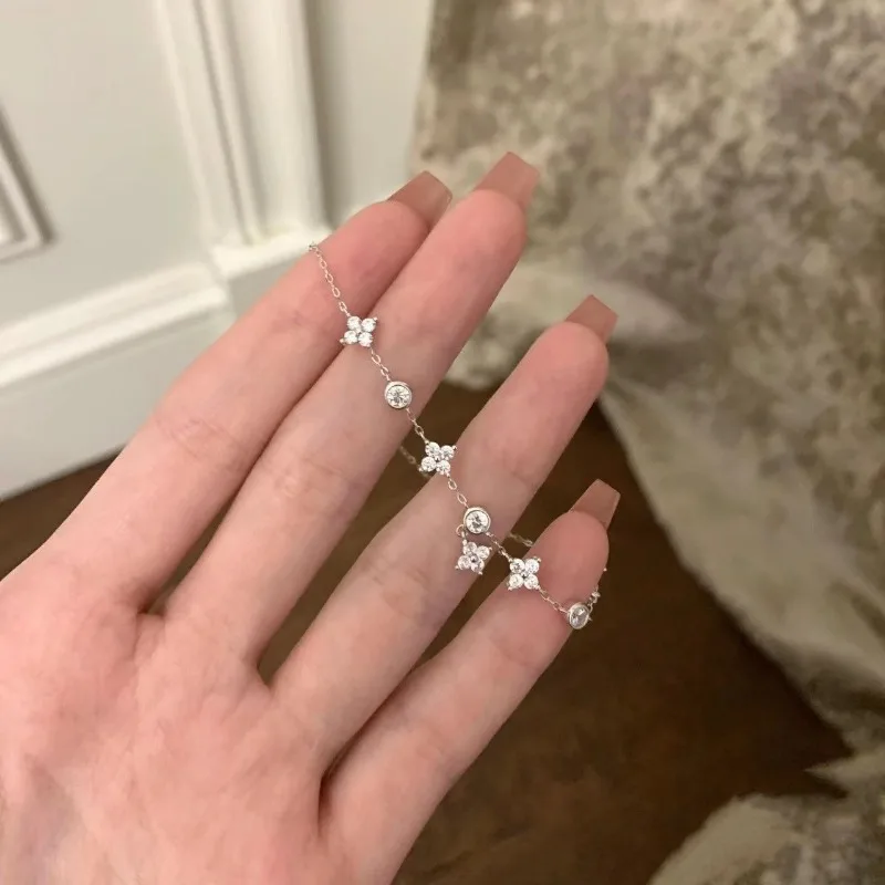Shiny Zircon Delicate Flower Ornament Bracelet for Women Korean Temperament High Quality Jewelry Gift