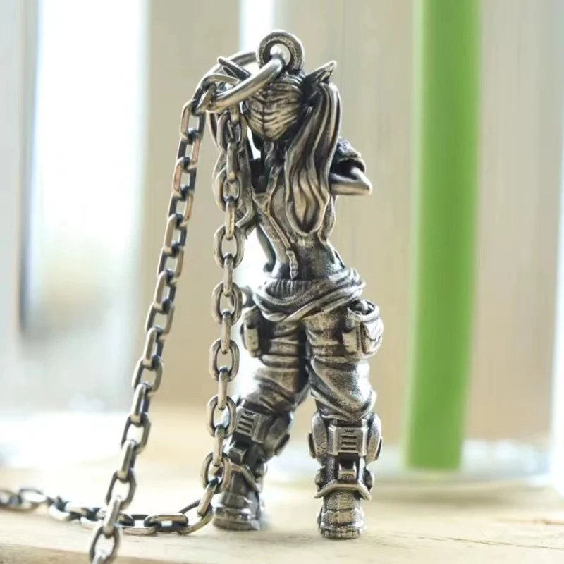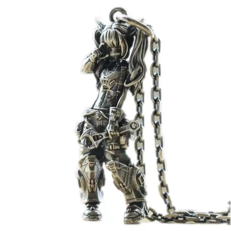 Silver-Plated Anime Mecha Beautiful Girl Girl Pendant Necklace Men and Women Hip-Hop Rock Punk Trendy Jewelry Gift