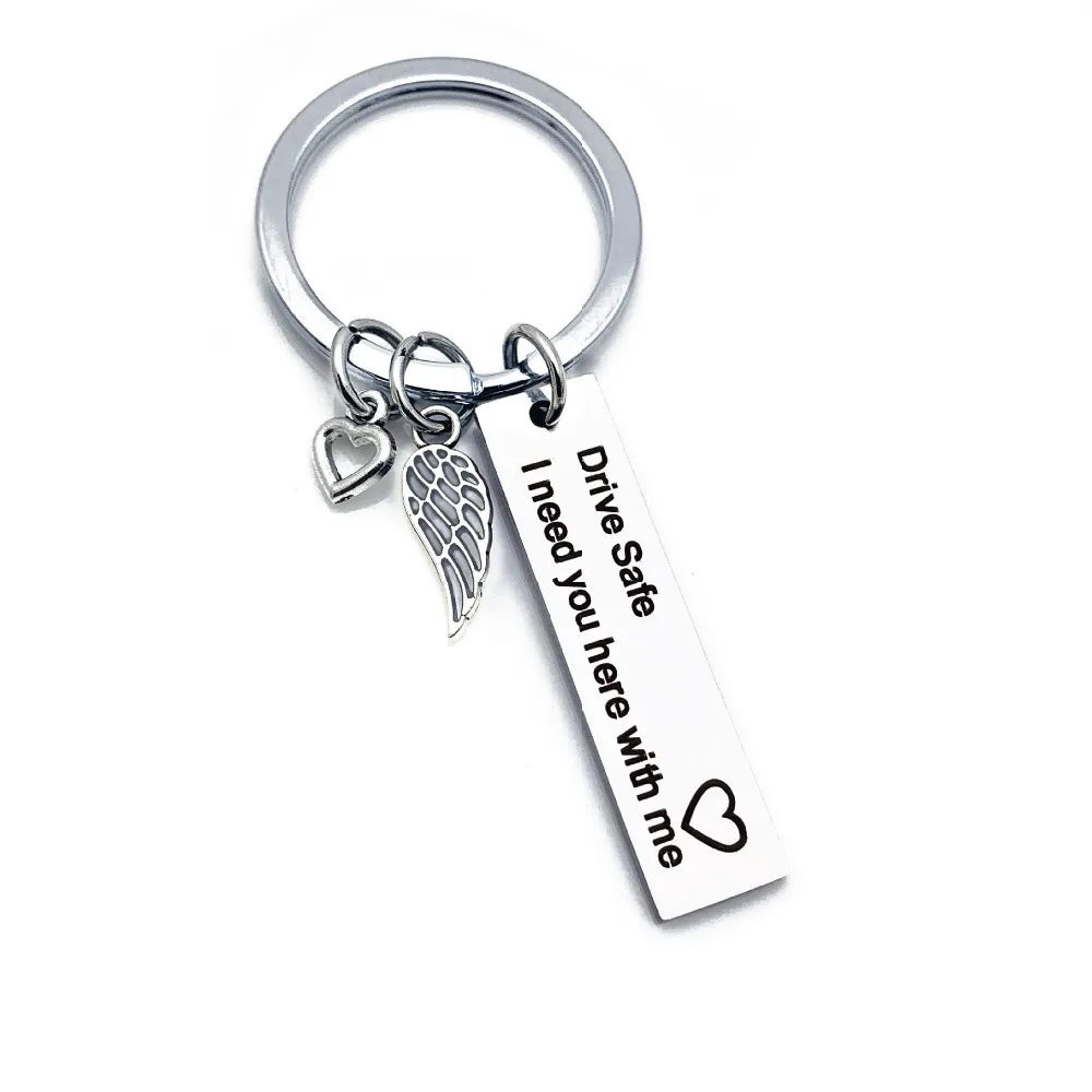 Name:Stainless Steel Drive Safe Hand I Love You Car Motorcycle Wing Metal Fashion Popular Keychain Family Key Ring Popular Small Gift
