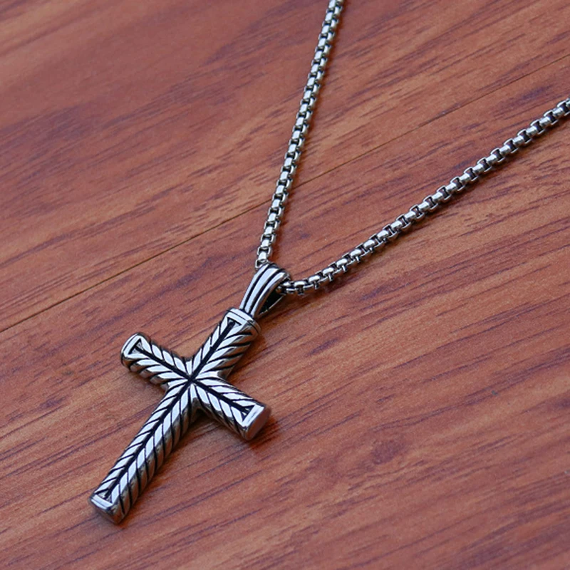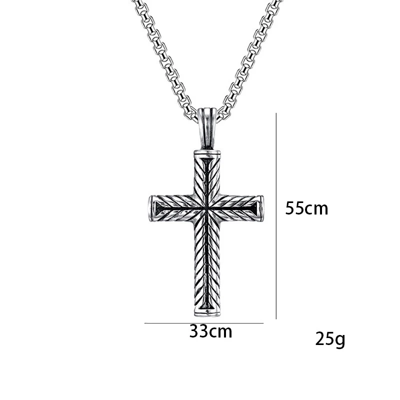 Twisted Pattern Cross Pendant Necklace Retro Simple Stainless Steel Chain Silver Color Hip Hop Jewelry Gifts For Women Men