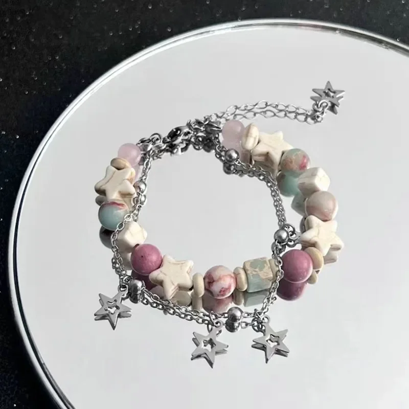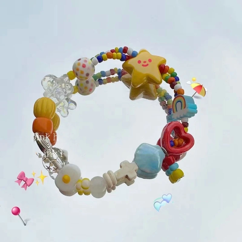 Women Summer Dopamine Sweet Cool Rhinestone Stars Bracelets Cute Cartoon Black Cat Heart Beads Bracelet Fashion Jewelry Gifts
