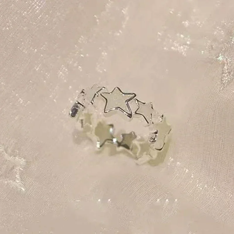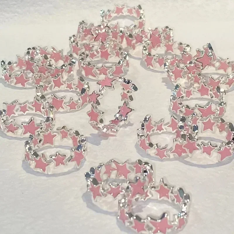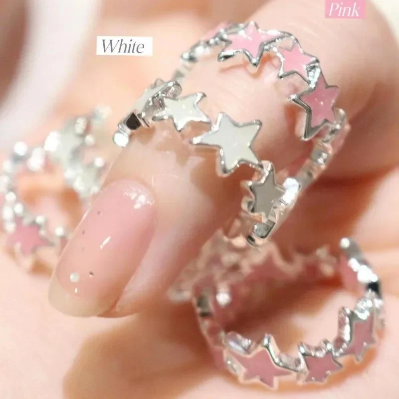 Y2k Irregular Pink Stars Rings Sweet Girls Cute Opening Adjustable Ring Korean Enamel Blue Star Paired Rings Aesthetics Jewelry